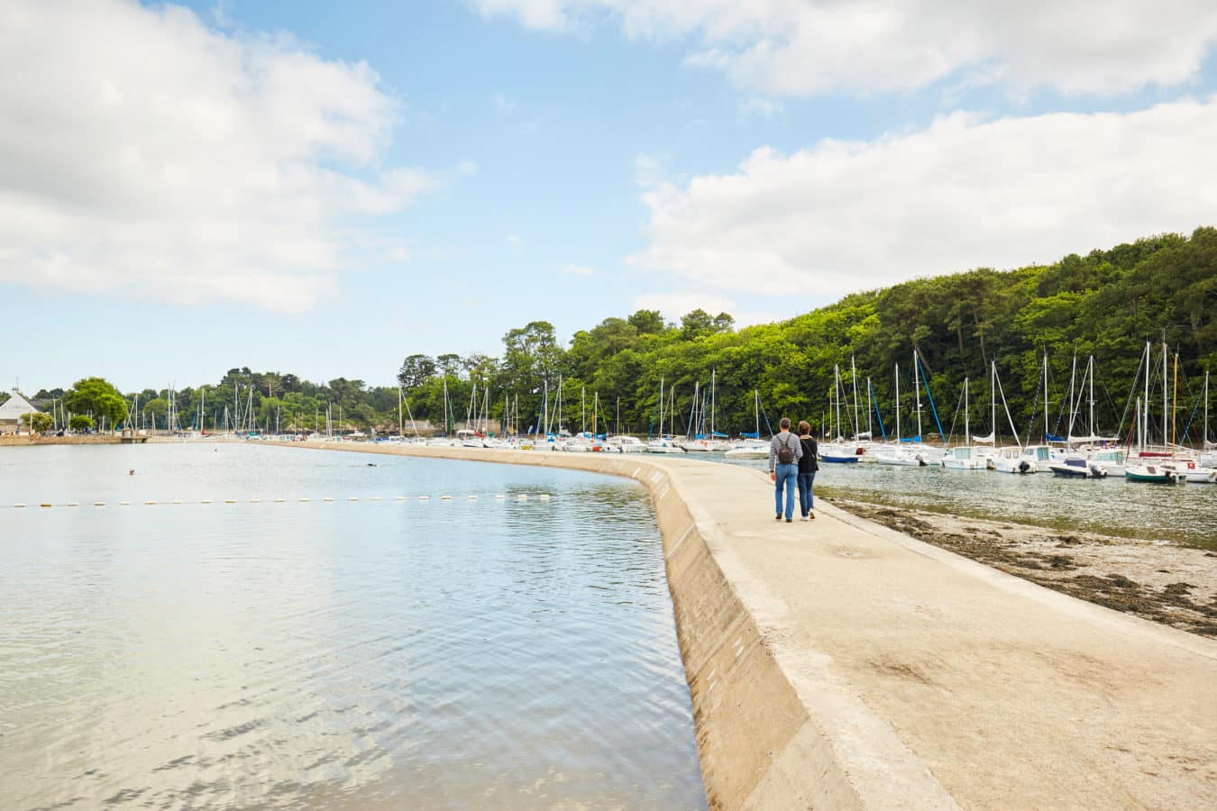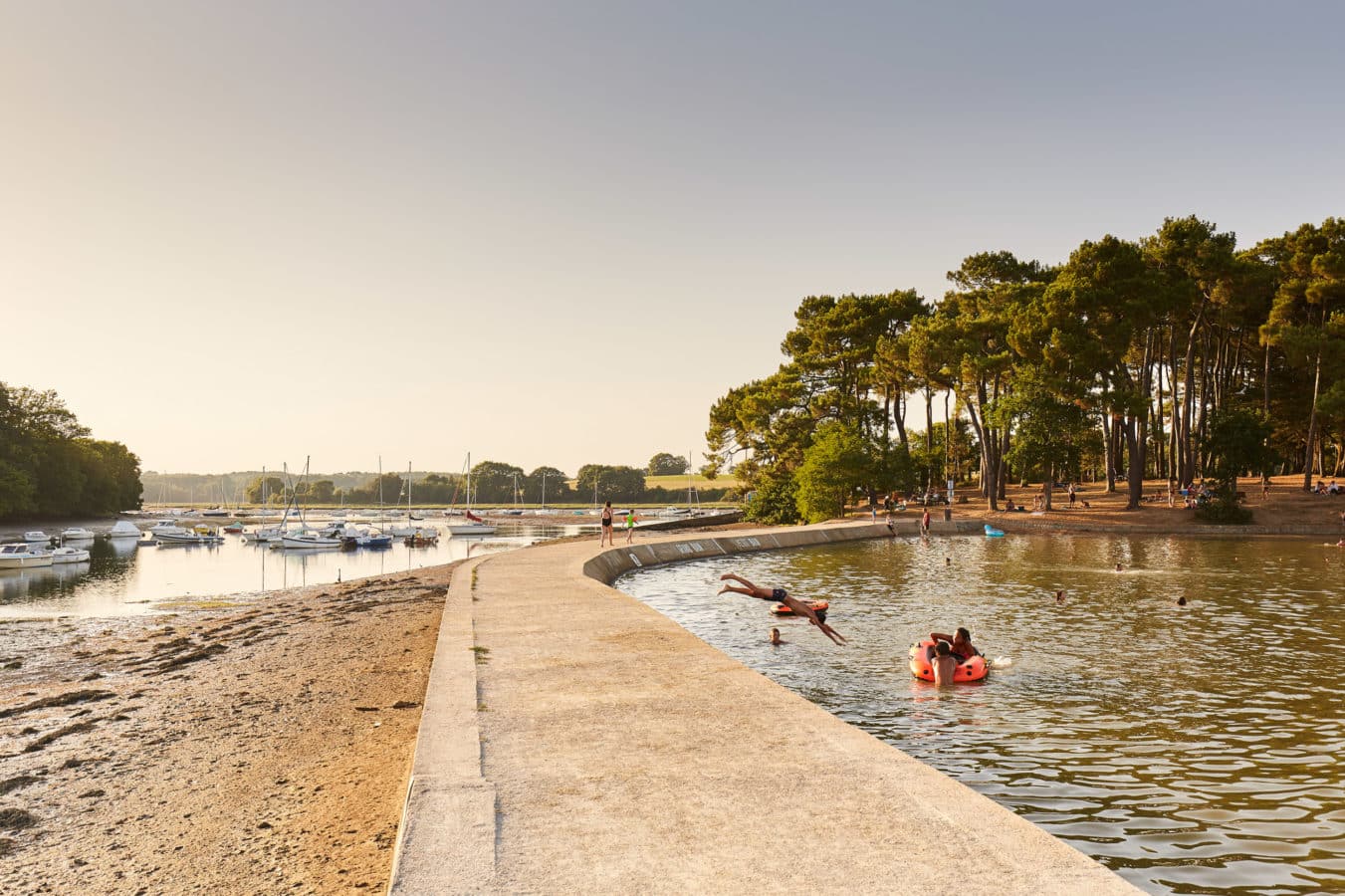 La presqu’île de Conleau Partager sur Facebook Partager sur Twitter Accueil » Explorer » Rencontrer l’exceptionnel… » Le Golfe du Morbihan » Visiter Vannes » La presqu’île de Conleau Située au sein du Golfe du Morbihan, la Presqu’île de Conleau offre un mélange fascinant de paysages naturels préservés et d’un patrimoine historique riche. Bien connue des vannetais pour sa piscine d’eau de mer, cette petite presqu’île boisée de grands pins offre une parenthèse de verdure au cœur de Vannes. Facilement accessible depuis le centre-ville de Vannes (elle est même desservie par la ligne 3 de la compagnie de bus Kicéo), la Presqu’île de Conleau constitue une escapade idéale pour les visiteurs en quête d’authenticité et de tranquillité. Que ce soit pour agrémentée une journée de visite de la ville de Vannes en famille (accessible pour les poussettes), une escapade romantique en fin d’après-midi ou une exploration en solitaire, cet écrin de nature préservée promet un condensé du Golfe du Morbihan. Presqu’île de Conleau, vue du ciel Presqu’île de Conleau, vue du ciel Conleau, piscine d’eau de mer Piscine d’eau de mer, de la presqu’île de Conleau Bois de pins de la presqu’île de Conleau Presqu’île de Conleau Conleau à travers l’Histoire Au tournant du XIXe siècle, l’engouement pour les stations balnéaires se développe, et en 1878, les propriétaires de l’île de Conleau entreprennent des travaux d’aménagement destinés à en faire une destination de villégiature prisée. Cette transformation comprend la création d’une piscine d’eau de mer, encadrée par des cabines de bain et des chalets, ainsi que la construction d’un restaurant et d’un grand hôtel, aujourd’hui le Best Western Le Roof. Bien que l’idée d’un casino soit évoquée, elle ne se concrétise pas. L’île est reliée au continent dès 1879 par une digue-route, favorisant ainsi son développement en tant que petite station balnéaire. Plus tard, au début du XXe siècle, un projet de tramway reliant la ville de Vannes à Conleau voit le jour, mais il est finalement abandonné en 1902. Malgré l’envasement progressif du site, similaire à celui du Mont Saint-Michel, Conleau prospère indépendamment de Vannes, notamment grâce à l’activité de pêche. À partir des années 1950, la presqu’île devient un lieu de loisirs et de promenades pour les habitants de Vannes. Aujourd’hui, la pointe des Émigrés et la rivière du Vincin, qui encadrent l’île, sont répertoriées par le Conservatoire du littoral, tout comme de nombreux espaces naturels du golfe du Morbihan. Les anciennes villas, inspirées de l’architecture des chalets suisses en vogue à l’époque, témoignent encore de cette période. La piscine, désormais gérée par la municipalité, est un lieu de baignade labellisé Pavillon Bleu d’Europe. Voir cette publication sur Instagram Une publication partagée par Golfe du Morbihan Vannes (@golfemorbihan) Un lieu de détente et de loisirs La piscine d’eau de mer constitue probablement l’une des activités les plus appréciées des vannetais, surveillée en été, invite à la baignade et aux jeux de plage. Profitez d’un moment de farniente sur le sable fin ou explorez les rochers à la découverte de la faune et de la flore locales. Le Petit Passeur : Une Traversée Pittoresque entre Conleau et Séné Accessible à tous et compatible avec un billet de bus du réseau Kicéo, le Petit Passeur assure la traversée entre la Presqu’île de Conleau et la cale de Barrarac’h située de l’autre côté de la rivière de Vannes, sur la commune de Séné. Ce moyen de transport se présente sous la forme d’un bac propulsé à l’énergie électrique permettant d’embarquer une trentaine de personnes et des vélos. Le service est régulier, il suffit de se présenter à la cale et agiter un drapeau rouge à disposition, si toutefois le bateau est à quai de l’autre côté de la rive. La traversée ne prend pas plus de 3 minutes. Il vous en coutera 3 euros pour un aller-retour, sans supplément si vous décidez de passer avec votre vélo. Une traversée est incluse dans l’offre City Pass. Petit passeur, Conleau à Barrarac’h En savoir plus sur le petit passeur Votre week-end à Vannes Vannes Les incontournables en quelques étapes Culture Week-end sans voiture dans le Golfe du Morbihan Nature Week-end romantique à Vannes Les visites guidées de Vannes Culture Découvrir les incontournables du Golfe du Morbihan Golfe du Morbihan Mer