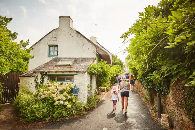 L’île aux Moines, surnommée la « perle du Golfe », est la plus grande des îles du Golfe du Morbihan, accessible en 5 minutes de bateau depuis Port-Blanc à Baden. Elle offre des paysages pittoresques, des plages, des criques et des sentiers de randonnée. Les visiteurs peuvent explorer son bourg animé, des sites mégalithiques comme le cromlech de Kergonan, et profiter de panoramas exceptionnels. L’île se découvre à pied, à vélo, ou via des excursions en minibus, et est idéale pour une escapade d’une journée ou plus.