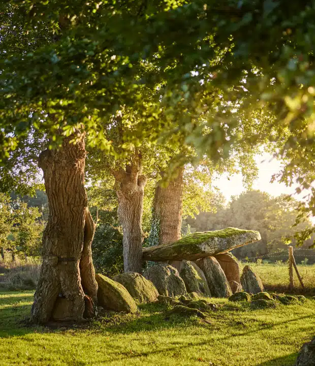 Les Landes de Lanvaux, au nord de Vannes, sont connues pour leurs paysages de collines et de vallées fluviales, offrant de magnifiques panoramas sur le Golfe du Morbihan. Cette région bucolique, marquée par le Massif armoricain, est idéale pour la randonnée avec ses chemins creux, ses forêts, et ses mégalithes. Les villages pittoresques, les étangs et les monuments historiques tels que les châteaux et les chapelles complètent ce cadre naturel préservé. Les Landes de Lanvaux représentent le « poumon vert » de Vannes.