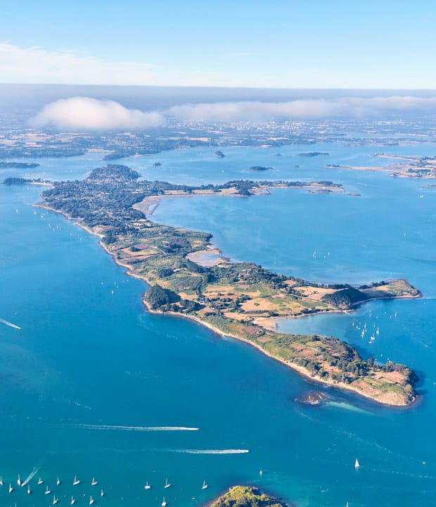 La presqu’île de Rhuys, située au sud de Vannes, offre un mélange fascinant de paysages côtiers et de patrimoine historique. Elle est connue pour ses plages de sable fin, particulièrement appréciées sur la côte atlantique, ainsi que pour ses sites naturels tels que les marais de Suscinio où l’on peut observer de nombreuses espèces d’oiseaux. Les visiteurs peuvent explorer des sites historiques comme le château médiéval de Suscinio et l’abbaye de Saint-Gildas de Rhuys. La région est également idéale pour les activités nautiques et les randonnées, notamment sur le sentier côtier GR34 qui offre des vues imprenables sur le Golfe du Morbihan​