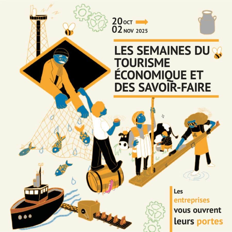 Édition 2025 : les semaines du tourisme économique et des savoir-faire Partager sur Facebook Partager sur Twitter Accueil » Actualités » Édition 2025 : les semaines du tourisme économique et des savoir-faire Actualités, Culture 1 octobre 2025 12 ENTREPRISES PARTICIPANTESSUR LE TERRITOIRE DE GOLFE DU MORBIHAN VANNES AGGLOMERATION Du 20 octobre au 2 novembre 2025 Après le succès des quatre premières éditions, la SPL Golfe du Morbihan Vannes Tourisme renouvelle sa participation à la 5ème édition des Semaines du Tourisme Economique et des Savoir-Faire organisée par la Fédération des Offices des Tourisme de Bretagne pour faire rayonner l’événement à travers toute la Bretagne. Cette année, 12 entreprises participent à l’événement sur le territoire de Golfe du Morbihan Vannes agglomération. Pendant deux semaines, sur le temps des vacances scolaires, habitants, visiteurs et voyageurs pourront (re)découvrir les coulisses des entreprises locales qui font l’identité et l’attractivité du territoire. Une immersion au cœur du patrimoine industriel breton entre innovation et savoir-faire. JE PARTICIPE LISTE DES ENTREPRISES PARTICIPANTES Nouveauté 2025 Graine de céramique, Vannes : atelier-boutique autour de la céramique Nouveauté 2025 Abbaye de Rhuys, St-Gildas de Rhuys : visite de l’abbaye Kicéo Transdev, Saint-Avé : atelier de maintenance des bus de l’agglomération. Nexstone, Grand-Champ : carrière et matériaux Aéropiste / Aérocook, Monterblanc : ateliers culinaires Ets Jégat, Arradon : ostréiculteur Roscanvec, Vannes : restaurant gastronomique & chambres de caractère à Vannes Les Bottes d’Anémone, Plescop : fleuriste éco-responsable Domaine Le Mézo, Ploeren : domaine hôtelier d’exception Distillerie du Gorvello, Sulniac Ostréapolis, Le Tour du Parc : centre d’interprétation dédié à l’ostréiculture La Compagnie des ports, Arzon : gestion et exploitation des ports départementaux de plaisance Hôtel de Limur, Vannes : Centre d’Interprétation de l’Architecture et du Patrimoine TARIF ET INSCRIPTION Les inscriptions sont ouvertes sur le site internet semaines-tourisme-economique.bzh. Les visiteurs doivent obligatoirement s’inscrire en ligne pour réserver leur(s) visite(s). Le prix du billet est de 2,50€ et une partie des recettes sera reversée à Patrimoines de Bretagne. JE PARTICIPE