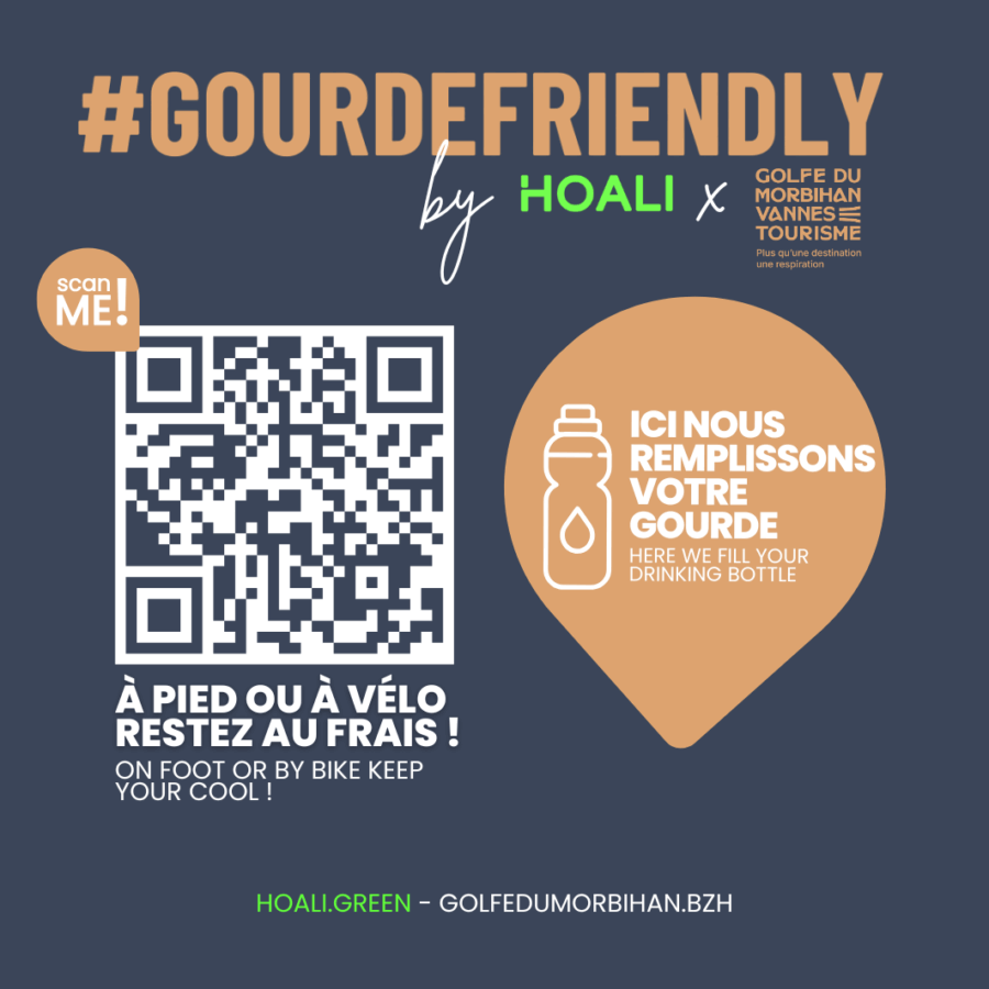 Golfe du Morbihan Vannes Tourisme s’engage dans le mouvement #Gourdefriendly Partager sur Facebook Partager sur Twitter Accueil » Actualités » Golfe du Morbihan Vannes Tourisme s’engage dans le mouvement #Gourdefriendly Actualités 23 juillet 2025 Prendre part au mouvement, une évidence pour l’équipe de l’office de tourisme ! Inscrit dans un Parc Naturel Régional, labellisé Accueil Vélo (bureau d’information touristique de Vannes), et faisant partie des destinations incontournables à proximité du GR34, notre office de tourisme a toutes les raisons de pouvoir offrir la possibilité aux locaux et voyageurs de remplir gratuitement leurs gourdes, toute l’année, grâce aux points d’eau de nos différents bureaux d’information touristique (de la presqu’île de Rhuys à Vannes). En 2025, c’est chose faite en adoptant la #Gourdefriendly touch ! Découvrir le mouvement #Gourdefriendly Hoali est la start-up bretonne initiatrice du dispositif #Gourdefriendly qui s’efforce à : 🎯 Accompagner les usagers vers une consommation moins carbonée 🎯 Lever les freins à l’usage de l’eau du robinet 🎯 Rendre accessible l’usage de la gourde 🎯 Faciliter la gestion des déchets sur un territoire 🎯 Renforcer l’engagement des professionnels sur un territoire Pour permettre aux visiteurs de trouver facilement des points de recharge en eau pour leur gourde, Hoali propose de les localiser via une carte interactive accessible : 👉Scanner le QRCode (possibilité de le récupérer dans les différents bureaux d’information touristique pour le coller sur sa gourde). 👉Se géolocaliser (#Gourdefriendly est un dispositif qui permet d’avoir connaissance des endroits où remplir sa gourde les plus proches de soi). Une pastille de couleur “Ici nous remplissons votre gourde” identifie l’établissement comme point de recharge. Améliorer l’effort collectif avec des enjeux identifiés Pour l’équipe de l’office de tourisme, cette initiative s’inscrit dans la continuité de son plan d’actions pour un tourisme plus durable : 🎯 Réduire l’utilisation des bouteilles en plastique à usage unique : 1 bouteille en plastique non achetée = 240 g de CO2 évités ! 🎯 Sensibiliser à l’usage de l’eau et à la préservation des ressources 🎯 Encourager l’usage de la gourde 🎯 Augmenter les services aux utilisateurs de gourde 🎯 Améliorer l’univers du service autour de l’itinérance et l’expérience client Professionnels du tourisme, rejoignez-nous ! En seulement quelques étapes : 👉 Remplir le formulaire en ligne 👉 Votre établissement sera ajouté à la carte interactive par la start-up HOALI permettant aux utilisateurs de vous localiser facilement 👉 Après validation, n’hésitez pas à nous contacter pour recevoir par mail, le lien du visuel #Gourdefriendly by Golfe du Morbihan Vannes Tourisme et le coller sur votre devanture. Pour viser des objectifs 🎯Contribuer à réduire l’impact écologique sur la destination 🎯Créer du lien avec les locaux et voyageurs 🎯 Intégrer un réseau En devenant ambassadeur #Gourdefriendly, vous renforcez votre engagement pour un tourisme plus durable et vous participez activement à faire de notre destination une destination d’excellence, innovante et durable ! L’eau est plus rare que l’orHubert Reeves Article rédigé par Marion BUCHHOLD