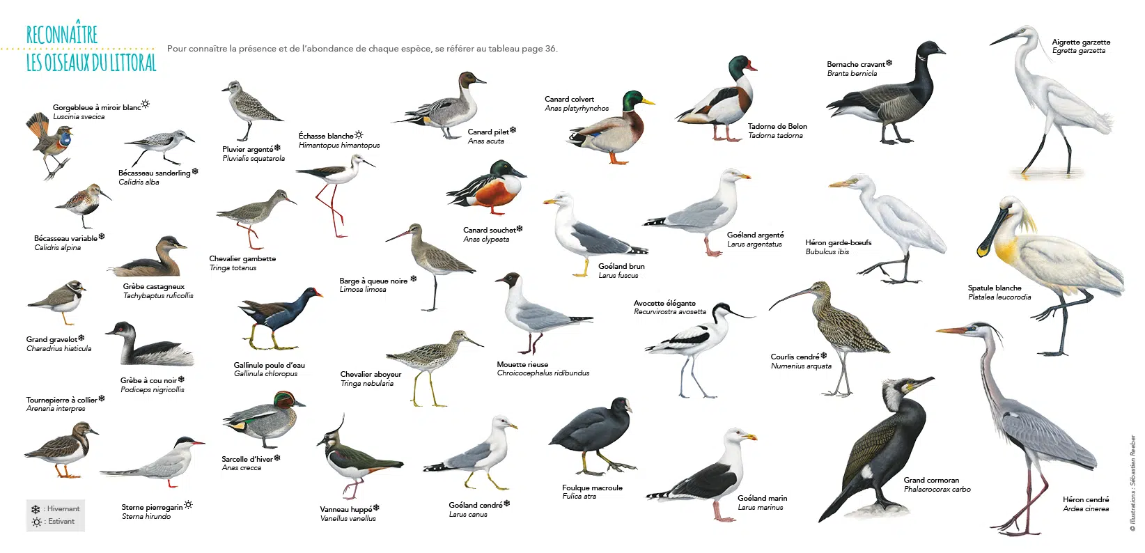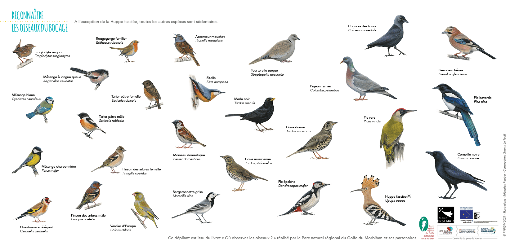 Observer les oiseaux Faites connaissance avec les hôtes de ces lieux ! Partager sur Facebook Partager sur Twitter Accueil » Explorer » Vivre l’exceptionnel… » Observer les oiseaux Nature Où observer les oiseaux dans le Golfe du Morbihan ? Le Golfe du Morbihan figure comme l’un des sites majeurs pour l’observation des oiseaux en France. Îlots, vasières, marais littoraux, bocages, landes et zones boisées sont autant de milieux naturels qui favorisent l’abondance et la diversité des espèces animales et végétales. Environ 200 espèces d’oiseaux sont recensées chaque année. Entre 80 000 et 120 000 oiseaux d’eau hivernent, d’octobre à février, sur la frange littorale du Parc Naturel Régional. 1 livret, 9 lieux d’observation Afin de trouver les lieux les plus propices à l’observation des oiseaux, le Parc Naturel Régional du Golfe du Morbihan a réalisé un livret intitulé « Où observer les oiseaux ? ». Ce document de 28 pages recense 9 « spots » d’observation autour du Golfe du Morbihan. Téléchargez-le, ci-dessous, ou rendez-vous dans l’un des bureaux d’information touristique du Golfe du Morbihan. Le livret d’observation est également disponible en anglais. Nouveauté : téléchargez les planches illustrées des oiseaux du Golfe du Morbihan pour mieux les identifier : Reconnaître les oiseaux du littoral Reconnaître les oiseaux du bocage Guides à télécharger Où observer les oiseaux Parc Naturel Régional du Golfe du Morbihan. Version française. Where watching birds – EN Parc Naturel Régional du Golfe du Morbihan. Where watching birds (english edition) Planche illustrée : reconnaître les oiseaux du bocage Planche illustrée des oiseaux du bocage pour faciliter l’identification des espèces présentes dans le Golfe du Morbihan. Planche illustrée : reconnaître les oiseaux du littoral Planche illustrée des oiseaux du littoral pour faciliter l’identification des espèces présentes dans le Golfe du Morbihan. Faites connaissance avec les hôtes de ces lieux ! Gorgebleue à miroir – © David Lédan Echasse blanche – © David Lédan Spatule blanche – © David Lédan Les meilleurs spots pour espionner le peuple ailé ! Voici en détail, 6 des 9 spots mis en évidence par le Parc Naturel Régional du Golfe du Morbihan… Réserve naturelle nationale des marais de Séné Créée en 1996, la réserve s’étend sur 530 hectares de vasières, de prés salés, d’anciennes salines et de prairies humides. C’est aujourd’hui un lieu essentiel pour la découverte des oiseaux du Golfe du Morbihan (canards, sternes, et surtout de nombreuses espèces d’échassiers), de la faune et de la flore des marais. 220 espèces d’oiseaux ont déjà été recensées dans la réserve. Elle est par ailleurs une escale migratoire pour presque toutes les espèces de limicoles fréquentant l’Europe de l’ouest. Pour visiter la réserve, deux possibilités sont offertes aux visiteurs : visites guidées ou libres. En savoir plus : réserve ornithologique des marais de Séné Marais de Lasné à Saint-Armel Classées Espaces Naturels Sensibles du département du Morbihan depuis 1978, ces anciennes salines ont retrouvé depuis 2003, toutes leurs lettres de noblesse avec la restauration d’une saline et la création d’une zone de quiétude. Deux conchyliculteurs y sont aussi installés et utilisent certains bassins. Cette diversité de milieux et d’usages offrent aux oiseaux un site de qualité. Marais de Suscinio à Sarzeau Sous le reflet du célèbre Château des ducs de Bretagne, près de 200 hectares d’anciennes salines, de marais et de roselières longent le cordon dunaire. Des chemins libres d’accès permettent une découverte du site. Marais du Duer à Sarzeau (observatoires) La réserve ornithologique du Duer, située sur la commune de Sarzeau est un lieu d’observation idéal pour tout connaître des us et coutumes de nos amis à becs. Deux observatoires sont libres d’accès toute l’année pour observer les oiseaux de passage et ceux qui y ont établi leur résidence principale ! Jumelles fortement conseillées. Bois du Huelfaut et du Hayo à Elven Ce boisement forestier est l’un des meilleurs sites pour entendre et voir le discret Pic noir et trois autres espèces de pics. Un réseau de petits chemins facilite votre balade sous le houppier des grands hêtres. Sur les hauteurs du Golfe, les oiseaux sont discrets. Tendez l’oreille et ouvrez l’œil. Camp de César à Monterblanc-Saint Avé Sur les hauteurs du Golfe du Morbihan, un réseau de sentiers et de chemins permet la découverte de cet environnement naturel, calme et verdoyant, aux senteurs d’ajoncs et de landiers. Si l’observation des oiseaux d’eau ne requiert pas de talent particulier, il en est tout autre pour les oiseaux des bois, du bocage et de la lande. Alors à vos oreilles et vos yeux aguerris ! Observatoire des marais du Duer – © A.Lamoureux Réserve du Duer à Sarzeau – © A.Lamoureux Sortie ornithologique dans les marais de Suscinio Observer les oiseaux avec David Lédan La Presqu’île de Rhuys est un terrain de jeu remarquable pour David. Ce guide ornithologique au service du Parc Naturel Régional (PNR) du Golfe du Morbihan fut longtemps aux avant-gardes pour faire avancer le projet de classement. Pas étonnant qu’il soit désormais en charge du volet ornithologique : « Mon rôle est d’assurer l’équilibre entre développement touristique et économique mais aussi la préservation de la biodiversité des espaces ». David Lédan est aussi un photographe animalier de talent dont les œuvres capturées au téléobjectif sont régulièrement exposées sur la Presqu’île de Rhuys. Suivez le guide ! Découvrez les prochaines dates des sorties ornithologiques proposées par l’Office de Tourisme et David Lédan : consultez l’agenda. Poursuivez votre visite du Golfe du Morbihan Le blog du PNR : Suivez l’actualité des oiseaux du