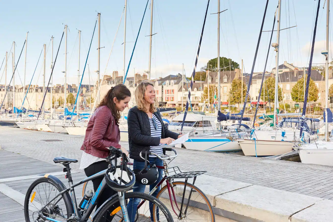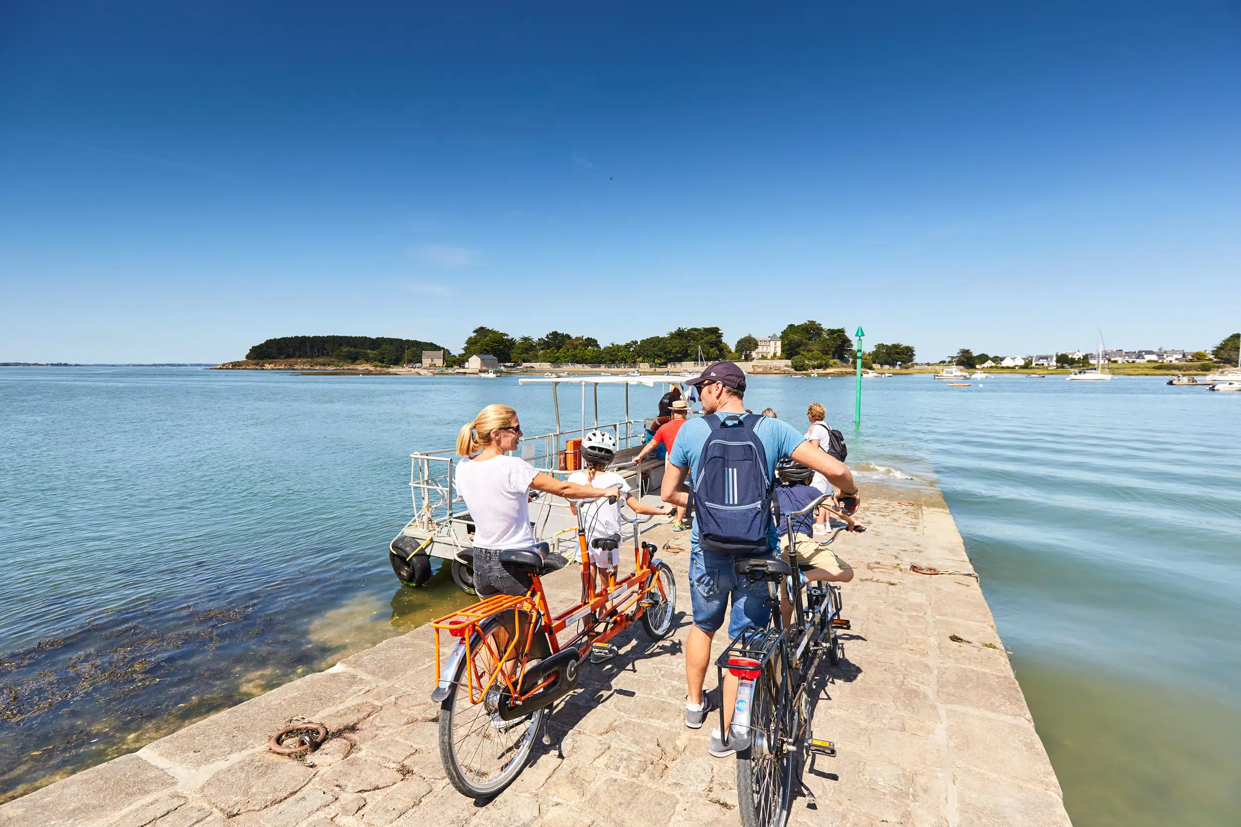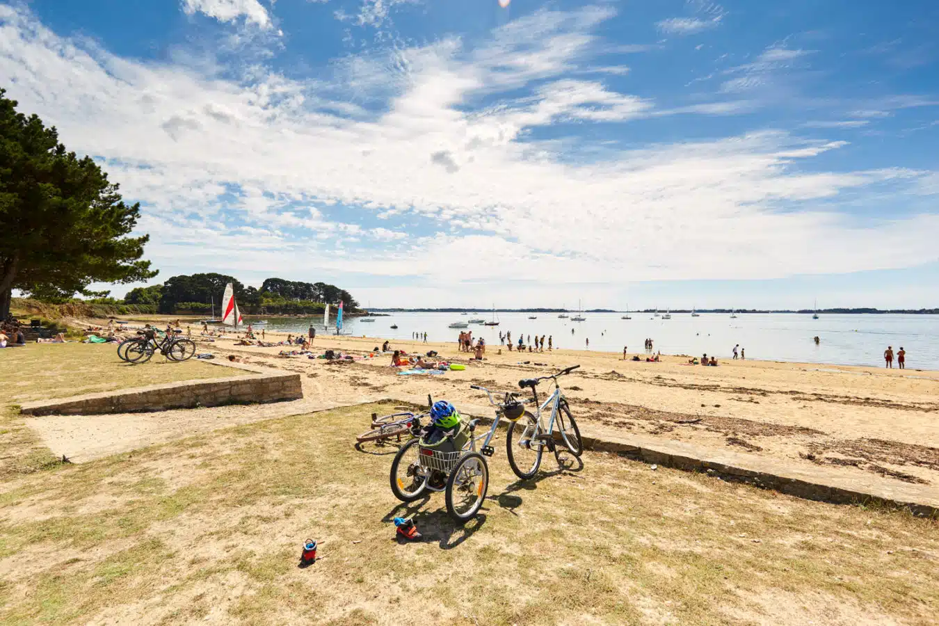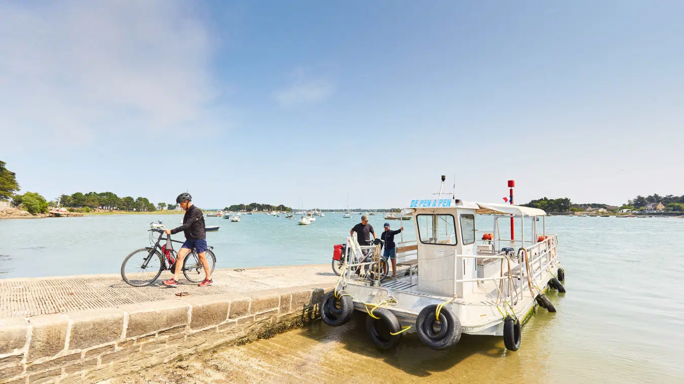 Les randonnées vélo Les itinéraires vélo dans le Golfe du Morbihan marient les routes de bord de mer, les pistes cyclables, les micro-pentes et les traversées en bateau… Partager sur Facebook Partager sur Twitter Accueil » Explorer » Vivre l’exceptionnel… » Les randonnées vélo Nature Pédaler autour du golfe… Le golfe du Morbihan est une vraie terre de vélo. Ici, tous les sujets de la petite reine trouvent pédale à leur pied ! Les itinéraires vélo marient les routes de bord de mer, les pistes cyclables, les micro-pentes (oubliez les grandes ascensions, ce n’est pas chez nous !) et les traversées en bateau… Car autour du golfe du Morbihan, les kilomètres s’enchaînent sur terre et s’économisent en mer… 5 Bonnes Raisons de faire du vélo dans le GOLFE DU MORBIHAN Planifiez votre itinéraire cyclable via l’outil Geovelo Embarquez à vélo ! Louer un vélo dans le Golfe du Morbihan WEEK-END SANS VOITURE Escapades à vélo, à la découverte des 8 stations vertes de l’agglomération Golfe du Morbihan-Vannes agglomération est un territoire touristique multi-facettes grâce à la diversité de ses 34 communes : urbaines, rurales, littorales ou bien encore insulaires. Véritable terrain de jeux pour les activités de pleine nature, l’agglomération séduit les amoureux du Golfe du Morbihan mais également ceux souhaitant sortir des sentiers battus dans le Pays vert. Ce livret Escapades à vélo vous donnera l’occasion de découvrir les 8 Stations Vertes du territoire (Arradon, Elven, Grand-Champ, Monterblanc, Plescop, Plougoumelen, Saint-Avé et Sulniac) en sillonnant 16 circuits et 4 liaisons, des Landes de Lanvaux au bord du Golfe. JE télécharge le livret J’utilise l’appli geovelo En savoir plus sur les communes « Stations vertes » du Golfe du Morbihan. 5 bonnes raisons de faire du vélo dans le Golfe du Morbihan 1 -S’ÉCONOMISER Faire du vélo dans le Golfe du Morbihan permet d’économiser et de s’économiser. Économiser car le tourisme à vélo est gratuit, ou pas cher si vous louez votre bicyclette. Les plans sont offerts par l’office de tourisme et généralement, se constituer un panier repas n’est pas des plus onéreux. S’économiser également ! Car si vous voulez voir du pays, et pédaler sur les deux rives du golfe, il y a une astuce qui vous permet de gagner 20 kilomètres en 2 minutes ! Des barges permettent aux randonneurs de ménager leurs efforts en embarquant leurs vélos pour atteindre par la mer l’autre rive du golfe, Damgan ou Locmariaquer. Ainsi les petits passeurs permettent de tricher pour atteindre Séné depuis la presqu’île de Conleau à Vannes ou la presqu’île de Rhuys à Saint-Armel tout en profitant d’une petite pause nautique, celui de Pen Cadenic de joindre Pénerf à Damgan et celui de Port-Navalo de traverser l’entrée du golfe pour relier Locmariaquer. Les liaisons maritimes (hors croisières) vers l’île aux Moines et l’île d’Arz accueillent également les vélos à leurs bords. 2 -PRENDRE SON TEMPS Privilégier la qualité à la quantité ! Comprenez : à chacun son rythme. Pas de stress, on pédale en coeur, et surtout on s’arrête quand on veut. Pour prendre une photo d’un nouveau point de vue sur le golfe ou devant une chapelle trop mignonne, pour se désaltérer sous un arbre centenaire, pour une pause shopping dans une boutique so trendy**, pour un pique-nique les pieds dans l’eau… Se perdre dans le golfe est aussi une des meilleures occasions de découvrir des trésors cachés, des points de vues différents, petits villages aux pierres surannées … 3 -COMMUNIQUER AVEC LA NATURE On ne va pas jouer les chamanes éperdus, mais sentez cette proximité immédiate avec la nature. Prenez pleinement conscience des panoramas à 360° que vous propose chaque point de vue ! Le Golfe du Morbihan offre une nature généreuse, sur terre et sur mer ! 4 – PRENDRE SOIN DE SA SANTÉ C’est un peu une vérité de la Palice ! Le vélo c’est bon pour la santé ! Outre l’effet fitness qui affine vos gambettes, le vélo augmente notre rendement cardio-pulmonaire, il diminue les risques de maladies chroniques telles le diabète ou l’hypertension artérielle et a une action préventive sur l’apparition de certains cancers. Ça, c’est pour le côté physique et c’est déjà pas mal ! Du point de vue psychique, le vélo est une activité qui permet aussi de se « vider l’esprit » et favorise le « lâcher prise ». Et ça, c’est énorme ! 5 -REMPLIR SON RÉSERVOIR À SOUVENIRS Une fois les formalités de la location passées, le pique-nique bien calé sur le porte-bagage et les premiers rondspoints contournés pour s’élancer sur les itinéraires fléchés, profitez de cette activité de partage en famille ou entre amis. La balade à vélo est idéale pour papoter, rigoler, se challenger dans les côtes ou piquer un sprint sur les derniers kilomètres. Pédaler devient une formidable odyssée, génératrice de souvenirs inoubliables ! Planifiez votre itinéraire cyclable Type de randonnée À cheval À pied À vélo 🏃 Trail 🚴 VTT-AE et Gravel 🥾 Marche nordique Ville Brandivy Elven Grand-Champ Locmaria Grand-Champ Locqueltas Meucon Monterblanc Plaudren Ploeren Saint-Avé Sarzeau Sulniac Surzur Séné Theix-Noyalo Treffléan Trédion Vannes Difficulté Facile Moyen Difficile Distance – de 10 km de 10 à 20 km + de 20 km Circuit du Govéro – Monterblanc 13 km – 3h30 – Moyen Etang du Govéro RD182 Entre Terre et Mer – Sarzeau 15 km – 3h45 – Moyen Parking du Bindo Randonnée Tro Breiz de Vannes à Sainte-Anne-d’Auray 22 km – 4h – Difficile Parking du velodrome Circuit de la boucle d’Assénac – Ploeren 8 km – 2h – Facile Départ du parking du Racker près du Stade Le Douarin Les Landes de Lanvaux – Experts 35.1 km – 3h40 – Facile Grand-Champ Pont Berthois 33 km – 3h – Facile Grand-Champ À la découverte de Burgo 19.2 km –