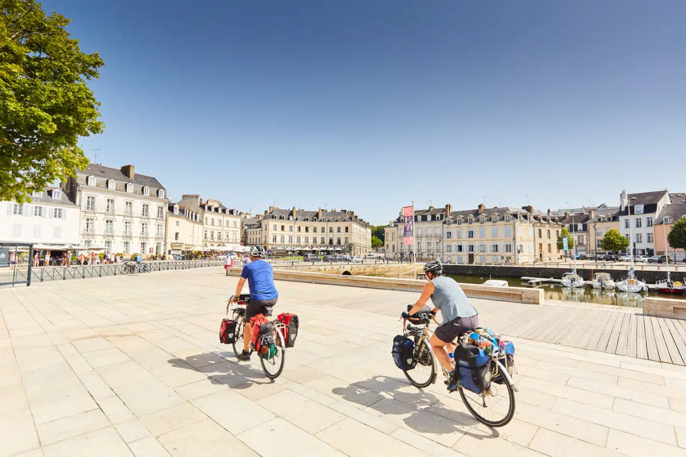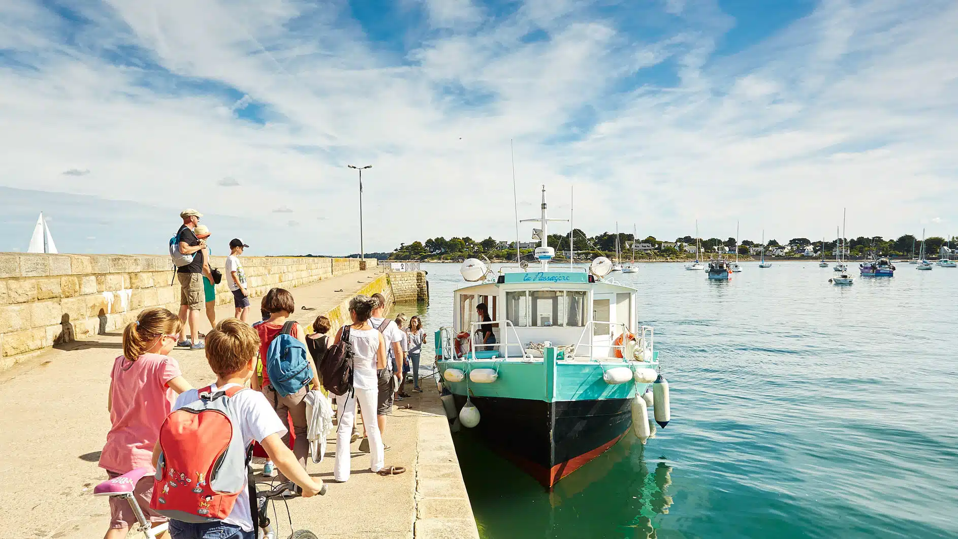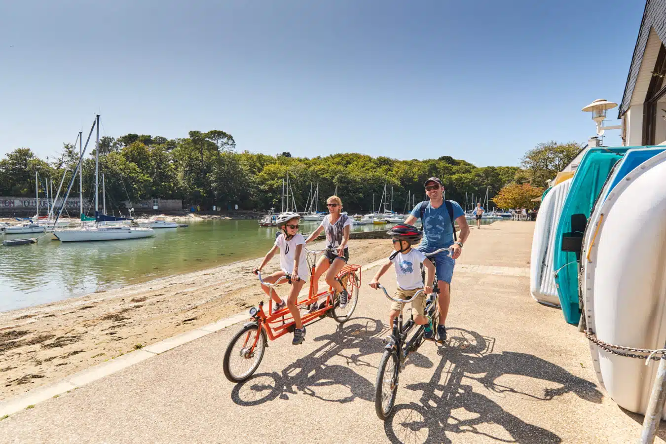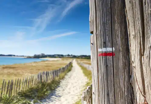 Les randonnées vélo Les itinéraires vélo dans le Golfe du Morbihan marient les routes de bord de mer, les pistes cyclables, les micro-pentes et les traversées en bateau… Partager sur Facebook Partager sur Twitter Accueil » Explorer » Vivre l’exceptionnel… » Les randonnées vélo Nature Pédaler autour du golfe… Le golfe du Morbihan est une vraie terre de vélo. Ici, tous les sujets de la petite reine trouvent pédale à leur pied ! Les itinéraires vélo marient les routes de bord de mer, les pistes cyclables, les micro-pentes (oubliez les grandes ascensions, ce n’est pas chez nous !) et les traversées en bateau… Car autour du golfe du Morbihan, les kilomètres s’enchaînent sur terre et s’économisent en mer… 5 Bonnes Raisons de faire du vélo dans le GOLFE DU MORBIHAN Planifiez votre itinéraire cyclable via l’outil Geovelo Embarquez à vélo ! Louer un vélo dans le Golfe du Morbihan WEEK-END SANS VOITURE Escapades à vélo, à la découverte des 8 stations vertes de l’agglomération Golfe du Morbihan-Vannes agglomération est un territoire touristique multi-facettes grâce à la diversité de ses 34 communes : urbaines, rurales, littorales ou bien encore insulaires. Véritable terrain de jeux pour les activités de pleine nature, l’agglomération séduit les amoureux du Golfe du Morbihan mais également ceux souhaitant sortir des sentiers battus dans le Pays vert. Ce livret Escapades à vélo vous donnera l’occasion de découvrir les 8 Stations Vertes du territoire (Arradon, Elven, Grand-Champ, Monterblanc, Plescop, Plougoumelen, Saint-Avé et Sulniac) en sillonnant 16 circuits et 4 liaisons, des Landes de Lanvaux au bord du Golfe. JE télécharge le livret J’utilise l’appli geovelo En savoir plus sur les communes « Stations vertes » du Golfe du Morbihan. 5 bonnes raisons de faire du vélo dans le Golfe du Morbihan 1 -S’ÉCONOMISER Faire du vélo dans le Golfe du Morbihan permet d’économiser et de s’économiser. Économiser car le tourisme à vélo est gratuit, ou pas cher si vous louez votre bicyclette. Les plans sont offerts par l’office de tourisme et généralement, se constituer un panier repas n’est pas des plus onéreux. S’économiser également ! Car si vous voulez voir du pays, et pédaler sur les deux rives du golfe, il y a une astuce qui vous permet de gagner 20 kilomètres en 2 minutes ! Des barges permettent aux randonneurs de ménager leurs efforts en embarquant leurs vélos pour atteindre par la mer l’autre rive du golfe, Damgan ou Locmariaquer. Ainsi les petits passeurs permettent de tricher pour atteindre Séné depuis la presqu’île de Conleau à Vannes ou la presqu’île de Rhuys à Saint-Armel tout en profitant d’une petite pause nautique, celui de Pen Cadenic de joindre Pénerf à Damgan et celui de Port-Navalo de traverser l’entrée du golfe pour relier Locmariaquer. Les liaisons maritimes (hors croisières) vers l’île aux Moines et l’île d’Arz accueillent également les vélos à leurs bords. 2 -PRENDRE SON TEMPS Privilégier la qualité à la quantité ! Comprenez : à chacun son rythme. Pas de stress, on pédale en coeur, et surtout on s’arrête quand on veut. Pour prendre une photo d’un nouveau point de vue sur le golfe ou devant une chapelle trop mignonne, pour se désaltérer sous un arbre centenaire, pour une pause shopping dans une boutique so trendy**, pour un pique-nique les pieds dans l’eau… Se perdre dans le golfe est aussi une des meilleures occasions de découvrir des trésors cachés, des points de vues différents, petits villages aux pierres surannées … 3 -COMMUNIQUER AVEC LA NATURE On ne va pas jouer les chamanes éperdus, mais sentez cette proximité immédiate avec la nature. Prenez pleinement conscience des panoramas à 360° que vous propose chaque point de vue ! Le Golfe du Morbihan offre une nature généreuse, sur terre et sur mer ! 4 – PRENDRE SOIN DE SA SANTÉ C’est un peu une vérité de la Palice ! Le vélo c’est bon pour la santé ! Outre l’effet fitness qui affine vos gambettes, le vélo augmente notre rendement cardio-pulmonaire, il diminue les risques de maladies chroniques telles le diabète ou l’hypertension artérielle et a une action préventive sur l’apparition de certains cancers. Ça, c’est pour le côté physique et c’est déjà pas mal ! Du point de vue psychique, le vélo est une activité qui permet aussi de se « vider l’esprit » et favorise le « lâcher prise ». Et ça, c’est énorme ! 5 -REMPLIR SON RÉSERVOIR À SOUVENIRS Une fois les formalités de la location passées, le pique-nique bien calé sur le porte-bagage et les premiers rondspoints contournés pour s’élancer sur les itinéraires fléchés, profitez de cette activité de partage en famille ou entre amis. La balade à vélo est idéale pour papoter, rigoler, se challenger dans les côtes ou piquer un sprint sur les derniers kilomètres. Pédaler devient une formidable odyssée, génératrice de souvenirs inoubliables ! Planifiez votre itinéraire cyclable Type de randonnée À cheval À pied À vélo 🏃 Trail 🚴 VTT-AE et Gravel 🥾 Marche nordique Ville Brandivy Elven Grand-Champ Locmaria Grand-Champ Locqueltas Meucon Monterblanc Plaudren Ploeren Saint-Avé Sarzeau Sulniac Surzur Séné Theix-Noyalo Treffléan Trédion Vannes Difficulté Facile Moyen Difficile Distance – de 10 km de 10 à 20 km + de 20 km Circuit du Govéro – Monterblanc 13 km – 3h30 – Moyen Etang du Govéro RD182 Entre Terre et Mer – Sarzeau 15 km – 3h45 – Moyen Parking du Bindo Randonnée Tro Breiz de Vannes à Sainte-Anne-d’Auray 22 km – 4h – Difficile Parking du velodrome Circuit de la boucle d’Assénac – Ploeren 8 km – 2h – Facile Départ du parking du Racker près du Stade Le Douarin Les Landes de Lanvaux – Experts 35.1 km – 3h40 – Facile Grand-Champ Pont Berthois 33 km – 3h – Facile Grand-Champ À la découverte de Burgo 19.2 km –