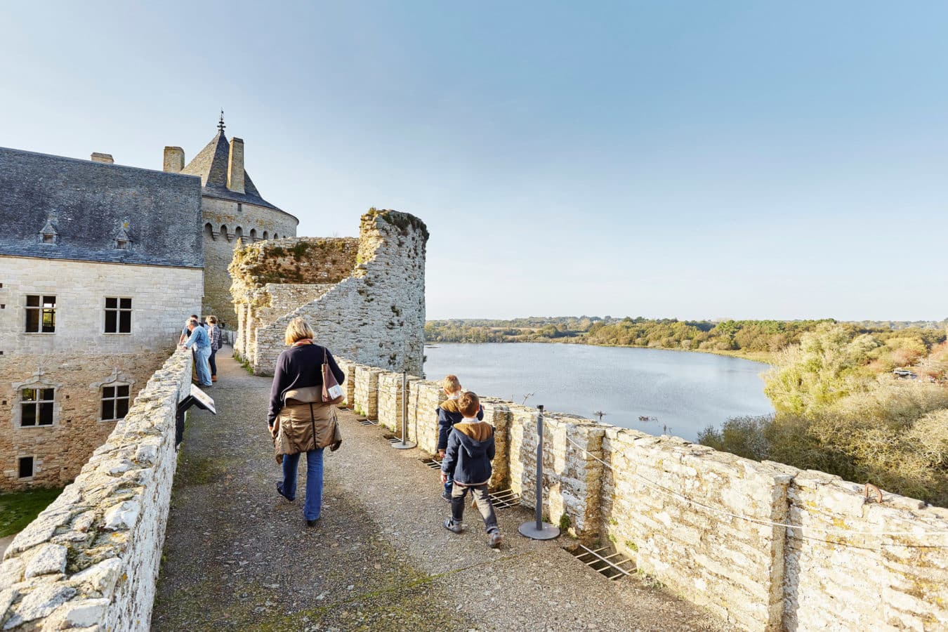 Le château de Kerlevénan Partager sur Facebook Partager sur Twitter Accueil » Explorer » Vivre l’exceptionnel… » Visites » Les châteaux du Golfe du Morbihan » Le château de Kerlevénan Culture Situé à Sarzeau sur la presqu’île de Rhuys, le château de Kerlevénan est entouré d’un parc boisé accessible en visite accompagnée. Le parcours commenté s’étend autour du château avec les anciennes écuries, le pavillon chinois et le temple de l’Amour transformé en chapelle. Château de Kerlevénan – Sarzeau Château de Kerlevénan – Sarzeau Château de Kerlevénan – Sarzeau Château de Kerlevénan – Sarzeau Château de Kerlevénan – Sarzeau Château de Kerlevénan – Sarzeau Le château du Marquis de Gouvello Construit à la fin du 18e siècle par le Marquis de Gouvello, le château de Kerlevénan surprend par son architecture néo-classique peu commune en Bretagne. Bâti en pierre de tuffeau sur l’emplacement d’un ancien manoir, il arbore une façade à colonnades et pilastres de style corinthien. Orienté face au golfe du Morbihan, l’édifice est souligné d’une élégante toiture à balustrade. L’ensemble formé par le château et son parc constitue un site naturel classé au titre du critère « artistique » depuis 1965. Les façades et toitures du château et des écuries, les salles à manger, le boudoir ainsi que la chapelle et le pavillon chinois sont classés monuments historiques depuis 1982. Le domaine de Kerlevénan est resté une propriété privée qui appartient toujours à la famille de Gouvello. Les descendants du Marquis ont aménagé les anciennes écuries en habitations où ils se retrouvent chaque été. Si le château ne se visite pas, des visites guidées du parc et de l’extérieur du château sont proposées en saison et sur rendez-vous le reste de l’année. Découvrir le parc du château Kerlevénan Accompagné d’un guide ou de l’un des propriétaires du château de Kerlevénan, vous pourrez découvrir l’histoire du château. L’édifice conçu par l’architecte Johannes à partir de 1784 est achevé en 1827 par l’architecte parisien Auguste Caristie. La promenade dans le parc permet de découvrir deux petites « fabriques de jardin » selon l’appellation du 18e siècle. Ces constructions à vocation ornementales prennent part à la composition paysagère du parc et ponctuent le parcours du promeneur. Le premier pavillon d’inspiration classique était un temple de l’Amour, transformé en chapelle en 1870. La seconde fabrique plus exotique demeure le pavillon chinois très à la mode dans les jardins de la fin du 18e siècle. Petite histoire de la famille de Gouvello À l’origine, le château est édifié pour le compte de Marie-Joseph-Armand de Gouvello, seigneur de Kériaval, Kelevenan, Kerhar, Kerbot et Kerlen et Marie Catherine de Peyrac. Il devient député de la noblesse aux États de Bretagne de 1788. Pendant la Révolution, le marquis s’exile en Bavière. Les travaux sont interrompus et le château est vendu comme Bien national. Sous la Restauration, son fils Pierre-Armand de Gouvello rachète le château et termine la construction de l’édifice dans le style italien. À sa mort en 1870, Amédée-Charles le fils de ce dernier en hérite. Député du Morbihan de 1871 à 1876, l’homme est aussi à l’origine de la création des asiles ruraux de Kerhar et Kerbot, en Sarzeau près du château de Kerlevénan. Et si vous meniez la vie de château… Un après-midi au château de Suscinio château Culture Le château de Kerlevénan Culture Les châteaux du Golfe du Morbihan Culture Le Domaine de Kerguéhennec La Forteresse de Largoët Visites dans le Golfe du Morbihan Culture Mégalithes Mer Nature Terroir Circuit sur les pas de nos Ducs – Sarzeau