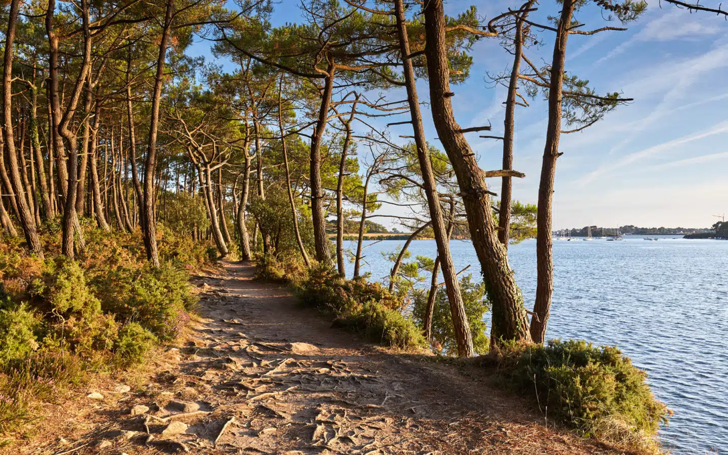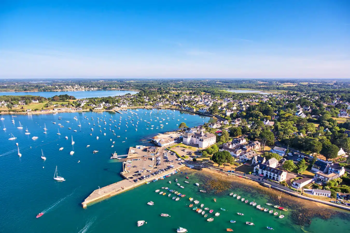 Autour du Golfe À quelques encablures de Vannes, le Golfe du Morbihan se dévoile Partager sur Facebook Partager sur Twitter Accueil » Explorer » Rencontrer l’exceptionnel… » Le Golfe du Morbihan » Autour du Golfe La côte du Golfe du Morbihan Port du Bono Randonnée à Baden Port de Larmor-Baden Vu de loin, on ne sait pas très bien où commence la mer et où se terminent les terres. Et même au plus près, l’esprit doute : cette grande et belle étendue d’eau miroitant sous le soleil, est-ce l’avant-goût de l’océan ou les dernières langueurs des fleuves ? Le golfe du Morbihan est ainsi, qui navigue entre deux eaux, deux réalités, deux identités. Sur son flanc nord, de part et d’autre de Vannes, se jettent pas moins de quatre rivières : Auray à l’ouest (la principale), Vincin et Marle au centre, Theix-Noyalo à l’est. Autant de bouches, de robinets alimentant Ia « petite mer » de leurs nutriments. Au profond de leurs entrailles, bien à l’abri des éléments, des bourgades, des villes ont grandi, un œil distant rivé sur le large : ainsi de Vannes, bien sûr, mais aussi du Bono et d’Auray. Sur le littoral même du golfe, Arradon, Larmor-Baden et Locmariaquer déclinent leur trilogie de plus en plus balnéaire. Quant à la discrète Baden, elle s’implante là où les pâturages, déjà, s’imposent au regard. Autant d’escales et d’horizons différents, où se rejoue constamment, dans l’apaisement des plus belles aquarelles, le mariage sans cesse recélébré de la terre et de la mer. Sommaire Arradon Baden Larmor Baden Le Bono Ploeren Plougoumelen Séné