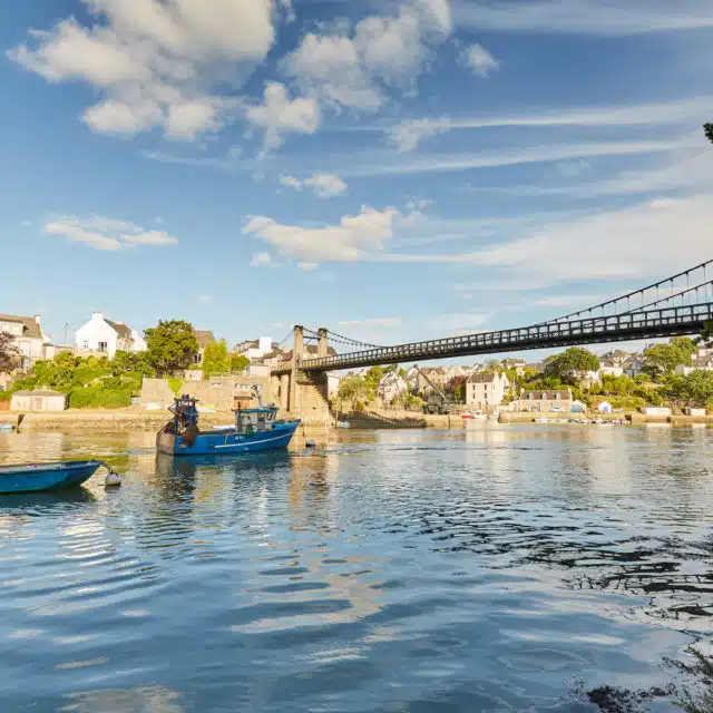 Le Bono LE BONO Partager sur Facebook Partager sur Twitter Accueil » Explorer » Rencontrer l’exceptionnel… » Le Golfe du Morbihan » Autour du Golfe » Le Bono Mer Le Bono est un petit village paisible d’environ 2300 habitants qui a su préserver son authenticité. Ce magnifique port se situant près d’Auray, est un vrai plaisir pour ceux qui aiment le pittoresque. Le Bono a connu autrefois une activité importante avec environ quatre cents marins et plus de cent bateaux. A partir du vieux pont suspendu du Bono, construit il y a plus de 150 ans, vous avez un superbe point de vue sur le port et les anciens chantiers ostréicoles. Vous y découvrirez des paysages sauvages d’une rare beauté en empruntant les sentiers côtiers de plus de 8 km. Pont supsenduChemin de randonnéeTumulus de Kernours à voir Le Vieux Pont suspendu reliant le Bono au Pays d’Auray, monument incontournable de la commune, dont les travaux se sont terminés en 1840. Plusieurs phases de travaux ont été nécessaires pour pallier aux effets néfastes du temps. Grâce à la générosité de nombreux particuliers, mécènes, et par le biais d’une souscription « fondation du patrimoine », le pont a été entièrement rénové et réouvert aux piétons et cyclistes.Le Tumulus du Rocher dit « Tumulus de Kernours », site datant du néolithique (environ 3000 AV JC), formé d’un tertre de terre et de plusieurs tombelles de l’âge de bronze. Cet ensemble mégalithique est niché à l’intérieur d’une pinède surplombant la rivière du Bono. EN DIRECT DU PORT DU BONO Evénements Apprenez en plus sur le site officiel de la commune du Bono. Poursuivez votre visite du Bono… Webcam du Bono Plougoumelen Les randonnées de Vannes et alentours Poursuivez votre visite Les randonnées de Vannes et alentours Les îles du Golfe du Morbihan Le Golfe du Morbihan