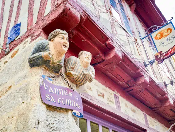 Voici le couple le plus photographié de Vannes et les meilleurs ambassadeurs de la ville sur les posts Instagram. À l’angle de la rue du Bienheureux-Pierre-René-Rogue et de la rue Noé, deux bustes peints en granit représentent un couple de bons vivants qui semble accueillir les clients d’une échoppe. Mais pourquoi ce nom ? Est-ce Monsieur Vannes ?… Sans doute puisqu’à l’époque la famille Vennes habitait dans le coin… De là à imaginer que Monsieur Vennes se soit fait tailler le portrait avec sa femme il n’y a qu’un pas et que Monsieur Vennes soit devenu Monsieur Vannes on veut bien croire que le téléphone arabe ait merveilleusement marché !