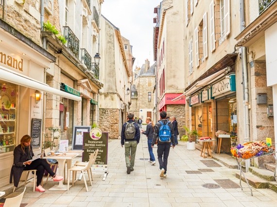 Visiter Vannes Foulez les pavés d’une cité pleine d’histoire Partager sur Facebook Partager sur Twitter Accueil » Explorer » Rencontrer l’exceptionnel… » Le Golfe du Morbihan » Visiter Vannes Culture circuits découvertes dans la ville de Vannes Faites connaissance avec Vannes et sa femme Les randonnées autour de vannes Vannes, capitale médiévale… Fouler les pavés d’une cité pleine d’histoire. De l’antiquité à l’époque contemporaine, la ville de Vannes a traversé les grandes périodes de l’histoire avec perte et fracas. Si la création de la cité renvoie à l’époque gallo-romaine et son plein rayonnement politique au XVIIe siècle, c’est au Moyen Âge que la vie bat son plein, que les courbes facétieuses de la ville se dessinent avec couleurs et pans de bois… De nombreuses visites guidées organisées par la ville et l’office de tourisme permettent d’arpenter le dédale des rues moyenâgeuses et de prendre de la hauteur sur le chemin de ronde des fortifications. Château fort, rempart, église, cathédrale… Le glossaire de l’architecture médiévale trouve sa parfaite illustration dans les rues et ruelles du vieux Vannes. Il suffit de s’y perdre pour découvrir ici un pavement médiéval, là une échauguette ou un mâchicoulis. Et si l’on devait résumer l’époque médiévale à quelques grands sites encore existants, les incontournables seraient les fortifications, ses portes et ses tours, la cathédrale Saint-Pierre, la Cohue, les maisons à pans de bois et le bastion Gréguennic avec sa fameuse batterie de casemates… Port de Vannes Découvrir Vannes en 6 lieux incontournables 1 – Les remparts Comptant parmi les dernières fortifications qui subsistent encore en Bretagne, les remparts de la ville de Vannes sont le socle du patrimoine touristique vannetais. Une première enceinte fut érigée par les Romains au IIIe siècle, mais c’est à la fin du XIVe siècle, sous le règne de Jean IV que les remparts sont consolidés et étendus pour protéger la population. Le duc élit résidence à Vannes et fit construire le château de l’Hermine aujourd’hui disparu. Car Louis XIV n’eut cure de ce patrimoine architectural. Le roi dilapida les remparts et le château de l’Hermine pour en vendre les pierres afin de financer ses guerres.Heureusement, certaines tours et bastions ont survécu parmi lesquels la Tour Calmont qui présente toutes les caractéristiques d’une porte médiévale avec ses deux passages, la porte charretière et celle pour les piétons. À quelques encablures la Tour du Connétable est la plus haute de l’enceinte et eut la particularité d’être à la fois une tour de défense puis une tour résidentielle comme en témoignent les grandes fenêtres à meneaux. 2 – La Cohue La Cohue accueille de nos jours le Musée des Beaux-Arts de Vannes. Si aujourd’hui la quiétude du lieu favorise la contemplation d’oeuvres contemporaines, il faut s’imaginer cette halle grouillant de vie au Moyen Âge. La Cohue hébergeait de nombreuses échoppes au rez-de-chaussée et le palais de la justice ducale au premier étage. Elle reçut même le Parlement de Bretagne au XVIIe siècle et les États de Bretagne à plusieurs reprises. 3 – La cathédrale Saint-Pierre De style gothique, la cathédrale Saint-Pierre est élevée sur les vestiges d’une ancienne cathédrale romane. Beaucoup l’ignorent, mais la cathédrale Saint-Pierre de Vannes est en fait une basilique. Elle peut en effet s’auréoler de ce titre puisqu’elle abrite les reliques de Saint Vincent Ferrier depuis 1419 et est un lieu de pèlerinage sur le chemin de Tro Breiz qui au Moyen Âge célébrait les Sept Saints Fondateurs de la Bretagne. 4 – L’HÔTEL DE LIMUR L’Hôtel de Limur à Vannes abrite depuis mai 2022 le Centre d’Interprétation de l’Architecture et du Patrimoine (CIAP), destiné à expliquer l’évolution architecturale, urbaine et paysagère de la ville depuis l’Antiquité. D’animations en expositions, d’activités ludiques en médiation culturelle, cet espace de rencontre se veut une vitrine unique et savante de découverte du territoire, à destination de tous. Centre d’Interprétation de l’Architectureet du Patrimoine Centre d’Interprétation de l’Architectureet du Patrimoine Centre d’Interprétation de l’Architectureet du Patrimoine 5 – Les maisons à pans de bois Les maisons à colombage ou maisons à pans de bois permettent d’illustrer les plus belles cartes postales vannetaises. La ville répertorie 170 maisons à pans de bois, la majorité autour de la cathédrale, mais aussi certaines dans le faubourg Saint-Patern et quelques-unes sur les rives du port. Il est probable qu’au XVe siècle il en existait environ 900. La place Henri IV est entourée des plus belles maisons à pans de bois de Vannes. Toutes affichent de belles couleurs avec parfois de petits détails magnifiquement sculptés. Les remparts de Vannes La cathédrale Saint-Pierre à Vannes Vannes et sa Femme, maison à pan de bois Insolite : les encorbellements des maisons à pans de bois La plupart des maisons à pans de bois possèdent un encorbellement marqué, c’est-à-dire un premier étage plus avancé que le rez-de-chaussée.Au Moyen Âge, cette caractéristique architecturale était très répandue, car cela permettait de laisser un passage assez large sur la voie publique et de gagner de la superficie sur les étages supérieurs. Autre avantage : autrefois on ne payait des impôts qu’en fonction de la superficie au sol des maisons… Mais gros problème, les encorbellements étaient tellement proches qu’ils facilitaient la propagation des incendies… d’où la communication au niveau supérieur des logements entre eux. 6 – Vannes et sa femme Voici le couple le plus photographié de Vannes et les meilleurs ambassadeurs de la ville sur les posts Instagram. À l’angle de la rue du Bienheureux-Pierre-René-Rogue 