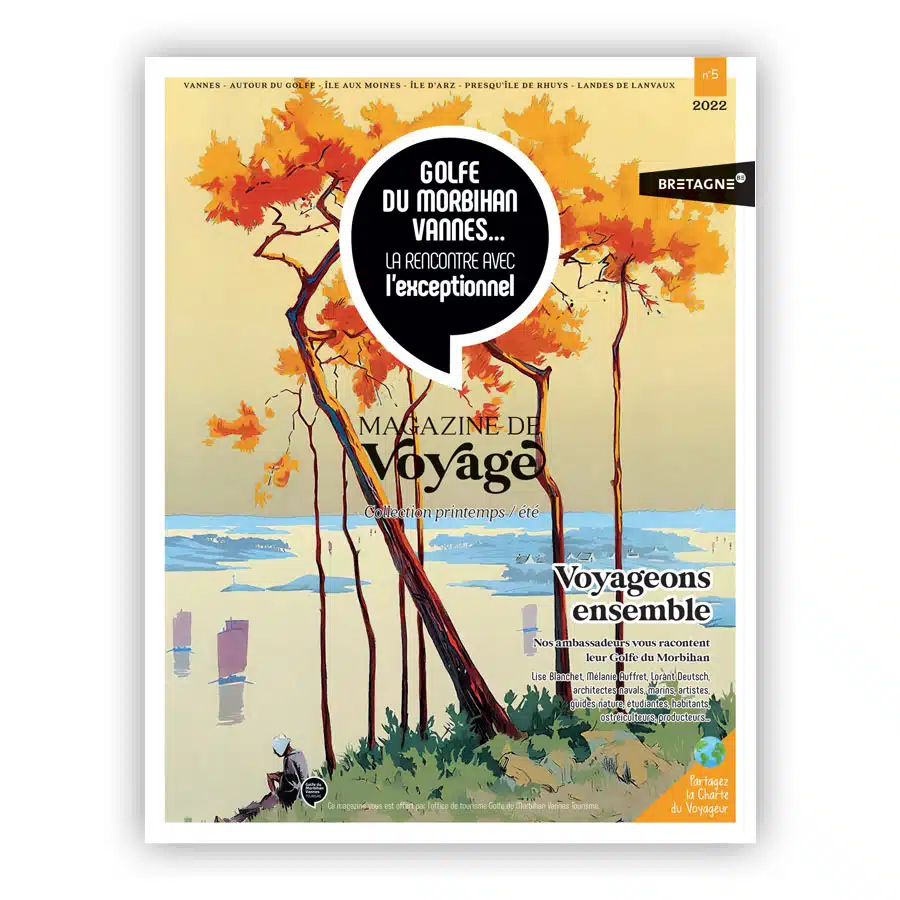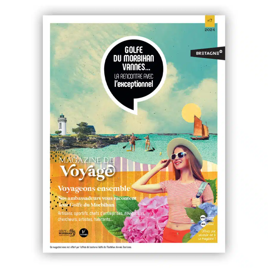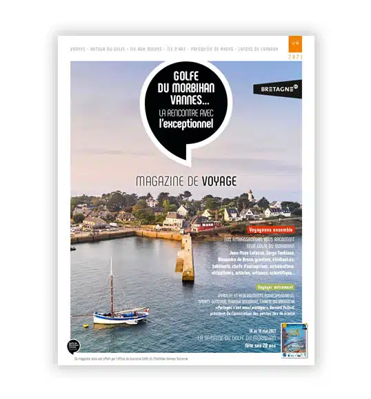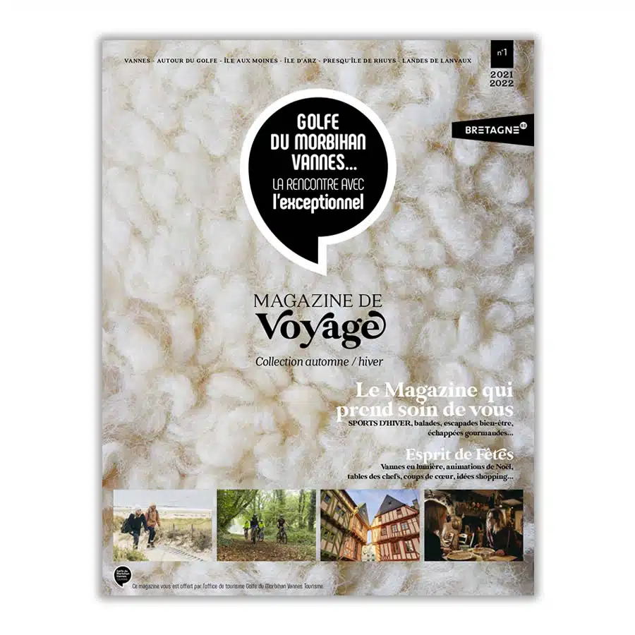 Les magazines de voyage Partager sur Facebook Partager sur Twitter Accueil » Préparer » Infos pratiques » Les magazines de voyage lES ARCHIVES DU MAGAZINE DE VOYAGE – GOLFE DU MORBIHAN VANNES TOURISME Téléchargez l’édition actuelle sur cette page. Pour vos vacances de Printemps – été ÉDITION N°7 – 2024 + VOIR LE SOMMAIRE : Pour vos vacances d’automne – hiver Pour vos vacances automne-hiver, tournez la page aux idées reçues ! +80 pages de sports d’hiver, balades, escapades bien-être, échappées gourmandes… MAGAZINE DE VOYAGE Automne – HIVER ÉDITION N°6 – 2023 + VOIR LE SOMMAIRE : La mer : Chausser les palmes La Semaine du Golfe Thierry Verneuil L’écovoyage d’Arvik LA NATURE : L’École de Rugby Echappée belle en vélo Gravel Tiphaine Turluche Pierre Le Corre LA CULTURE : L’esprit breizh Céline Le Belz Camille Duboisset LE TERROIR : Perpétuer les savoir-faire Shopping éthique à Vannes Les chocolatiers du Golfe Angélique Rocheteau Lucien Jalu LES MÉGALITHES : Les mégalithes expliqués aux enfants Les mégalithes, un patrimoine vivant ! téléchargez l’édition N°6 ÉDITION N°5 – 2022 + VOIR LE SOMMAIRE : La mer : Penser le nautisme de demain : Architecture navale Rencontrer les Forbans : Escapade au Bono Saluer les héros de la mer : la SNSM d’Arzon et de Baden LA NATURE : Les vrais/faux du (micro) climat du Golfe du Morbihan Fouler les sentiers S’imprégner du charme des Landes deLanvaux Chevaucher les sentiers des Landes de Lanvaux Perfectionner son swing LA CULTURE : Transcender les époques à Vannes : Ville d’histoire et d’aujourd’hui ! Flâner à travers l’histoire : Le château de Kerlévenan Varier les points de vue à Suscinio LE TERROIR : Découvrir les pouvoirs de l’huître : une véritable ressource valorisée dans le golfe Dévorer le terroir à pleines dents : les food tours du Golfe du Morbihan Savourer une petite mousse du golfe Pousser les portes d’épiceries vrac : S’emballer pour le « zéro déchet » LES MÉGALITHES : Comprendre notre passé : des trésors en héritage TéLéchargez L’édition n°5 ÉDITION N°4 – 2021 + VOIR LE SOMMAIRE : La mer : 20 ans de voiles élégantes et de fêtes Rêver d’une île dans le Golfe Lâcher prise toute l’année Portraits : Patrick Nicol, Bernard et Catherine Pallard LA NATURE : On the road Le Golfe outdoor Contempler un arbre remarquable L’énergie propre de la Petite Mer Portraits : Mouncef Sedrati, Evelyne et Marie LA CULTURE : Saint-Patern Le Golfe fait son cinéma Préserver les richesses patrimoniales du Golfe Portraits : Jean-Yves Lafesse et Matthieu Bobin LE TERROIR : Les vignobles du Golfe Déguster local Portraits : Pierre Martin et Vincent Jannot LES MÉGALITHES : Maintenir le cap vers l’UNESCO Carte des mégalithes téléchargez l’édition N°4 ÉDITION N°3 – 2020 + VOIR LE SOMMAIRE : La mer : Courir en rythme Pédaler autour du golfe Portraits : Coralie Demay et Géraldine Andrieux LA NATURE : Ralentir le tempo Embarquer à bord d’un sinagot Attraper un gros poisson Portraits : Thomas Coville et Thierry Leygnac LA CULTURE : Butiner de fleurs en fleurs Parler gastronomie avec 3 chefs étoilés Déguster le Golfe du Morbihan Goûter la tradition Portraits : Thomas Neveux et famille Le Droguen LE TERROIR : Habiter le Golfe du Morbihan Sortir des sentiers battus Le Golfe du Morbihan vu par Nono Portraits : Hervé Mazé et Bruno Pilorget LES MÉGALITHES : Mégalithes des Landes de Lanvaux Carte des mégalithes téléchargez l’édition N°3 ÉDITION N°2 – 2019 + VOIR LE SOMMAIRE : La mer : Embarquer à bord de la Semaine du Golfe du Morbihan Jouer avec les éléments Ça ride dans le Golfe Découvrir le Golfe du Morbihan autrement Visiter l’Île aux Moines avec Soazig Être capitaine de père en fils LA NATURE : Les vrais/faux du (micro) climat du Golfe du Morbihan Fouler les sentiers S’imprégner du charme des Landes deLanvaux Chevaucher les sentiers des Landes de Lanvaux Perfectionner son swing LA CULTURE : Succomber à une histoire d’amour et d’eau de mer Se mettre à la table du Chef Puiser l’inspiration Bavarder au comptoir LE TERROIR : Envoyer la musique Communier avec l’art sacré Rendre visite aux Ducs de Bretagne LES MÉGALITHES : Rencontrer Yves Coppens Téléchargez l’édition N°2 ÉDITION N°1 – 2018 + VOIR LE SOMMAIRE : La mer : Naviguer sur un ambassadeur du golfe Faire escale dans le Golfe du Morbihan Barrer des voiliers de légende Les plages by les experts de l’office de tourisme Innover sur les rives du Golfe LA NATURE : Marcher à son rythme Vivre une arrivée du Tour de France Préserver la petite mer Ajuster ses lunettes de pilote Prendre de la hauteur LA CULTURE : Fouler les pavés d’une cité pleine d’histoire Sentir la ferveur du stade de la Rabine Jouer aux archéologues Apprécier l’Art Brut LE TERROIR : Tour du Golfe gastronomique Se faire un bon plateau de fruits de mer Cultiver l’excellence LES MéGALITHES : Serpenter de menhir en dolmen, de cairn en enceinte mégalithique Comprendre notre passé TéLéchargez L’édition n°1 lES ARCHIVES DU MAG’TOURISME – OFFICE DE TOURISME PRESQU’ILE DE RHUYS ÉDITION N°1 – 2014 TéLéchargez L’édition n°1 ÉDITION N°2 – 2015 TéLéchargez L’édition n°2 ÉDITION N°3 – 2016 TéLéchargez L’édition n°3 ÉDITION N°4 – 2017 TéLéchargez L’édition n°4 ÉDITION N°1 – 2011 TéLéchargez L’édition n°1 ÉDITION N°2 – 2012 TéLéchargez L’édition n°2 ÉDITION N°3 – 2013 TéLéchargez L’édition n°3