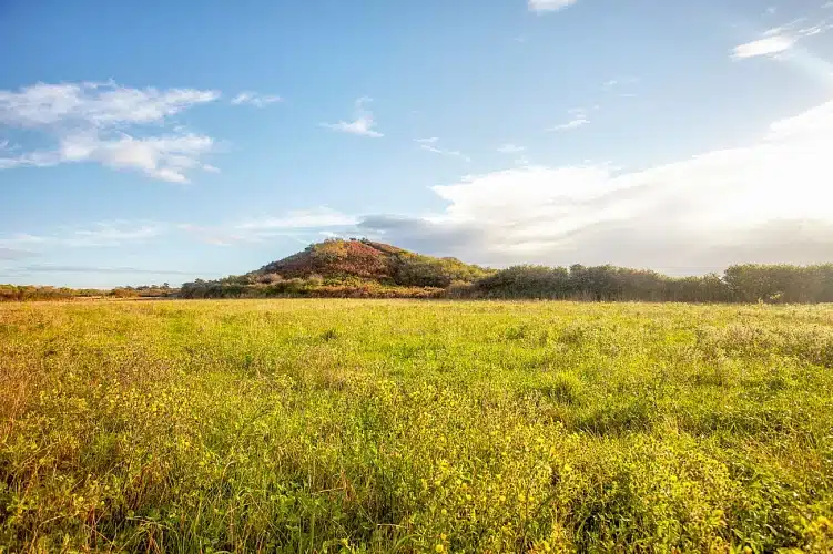 Le Tumulus de Tumiac – Arzon Partager sur Facebook Partager sur Twitter Accueil » Les randonnées pédestres » Le Tumulus de Tumiac – Arzon Durée : 2h GPS : 47°32'306 N 2°52'428 O Distance : 7 km Départ : Aire multimodale du Sanso, rue de la Butte Difficulté : Facile Le départ de ce circuit de randonnée est accessible en bus (arrêt à moins de 500 m) Nom de la compagnie Numéro de la ligne Nom de l’arrêt de bus Kicéo Kerjouanno + d’informations sur le site de la compagnie. NOUVEAU CIRCUIT – LE PDF N’EST PAS ENCORE DISPONIBLE DÉTAIL DU CIRCUIT A la sortie du parking, prendre à gauche au stop, emprunter le passage piéton et suivre la véloroute 45 qui emprunte le tracé de l’ancienne voie ferrée. Au croisement, aller par le chemin de droite voir le Tumulus de Tumiac. Il faut faire un aller-retour de 300m pour ensuite revenir à ce carrefour et continuer tout droit dans un chemin qui sépare deux champs. TUMULUS DE TUMIAC Ce Tumulus de 56 m. de diamètre, fut exploré en 1853. Un rudiment d’allée couverte conduisant à une chambre centrale, formée de trois supports monolithiques recouverts d’une importante dalle de quartz a été découvert. L’allée elle-même était couverte de deux dalles. Classé en 1926, le Tumulus fit l’objet de nouvelles fouilles en 1934, qui mirent à jour plusieurs sépultures. N’oubliez pas vos jumelles pour découvrir le magnifique panorama ! L’un des observateurs les plus célèbres ne fût il pas ”César”, qui en l’an 56 avant JC aurait ainsi supervisé la ”bataille des Vénètes” en baie de Quiberon. Faute de vent, la flotte des lourds voiliers Vénètes fût décimée par les galères romaines à rames (historiquement, César aurait été installé sur le Grand Mont à Saint Gildas). Emprunter le chemin creux à droite, puis bifurquer à gauche avant les habitations. Au village de Béninze, où il est possible d’observer les habitations d’anciens capitaines, descendre la rue vers le Moulin de Pen Castel qui habrite de nombreuses expositions. Il est possible de prendre le chemin côtier à droite par la plage. Mais, le sentier n’est pas accessible à marée haute, il est conseillé de revenir sur ses pas et de tourner à gauche sur le chemin du Piquen Tuanic. Continuer sur le sentier côtier à droite, passer une plage, il est possible d’observer des résineux emblématique du littoral sud-morbihannais comme des cyprès de Lambert. Originaire de Californie, cet arbre n’est arrivé dans le département qu’au début du siècle dernier (1900-1920). Passer par l’anse du Poul et le village de Porh Nèze, accessible après un passage sur du platelage sur la droite. Passer la fontaine de 1826, qui offrait la meilleure eau de source d’Arzon, et prendre le sentier à gauche. Poursuivre puis traverser la D198 jusqu’au Tumulus de Tumiac et reprenez le même chemin qu’à l’aller pour retrouver le point de départ. Télechargez le circuit PDF Télechargez le fichier GPX Randonnées similaires Presqu'île de Rhuys Regards sur le Golfe – Variante par le Duer 15 km Parking du Bindo Presqu'île de Rhuys Regards sur le Golfe – Variante par la Pointe de l’Ours 22 km Parking du Bindo Presqu'île de Rhuys Vue sur l’océan – Variante par la boucle de Penvins 9 km Parking La Grée Penvins chemin du Marais Presqu'île de Rhuys Vue sur l’océan – Variante par Saint-Jacques Suscinio 22 km Parking Saint Jacques Rue Erin