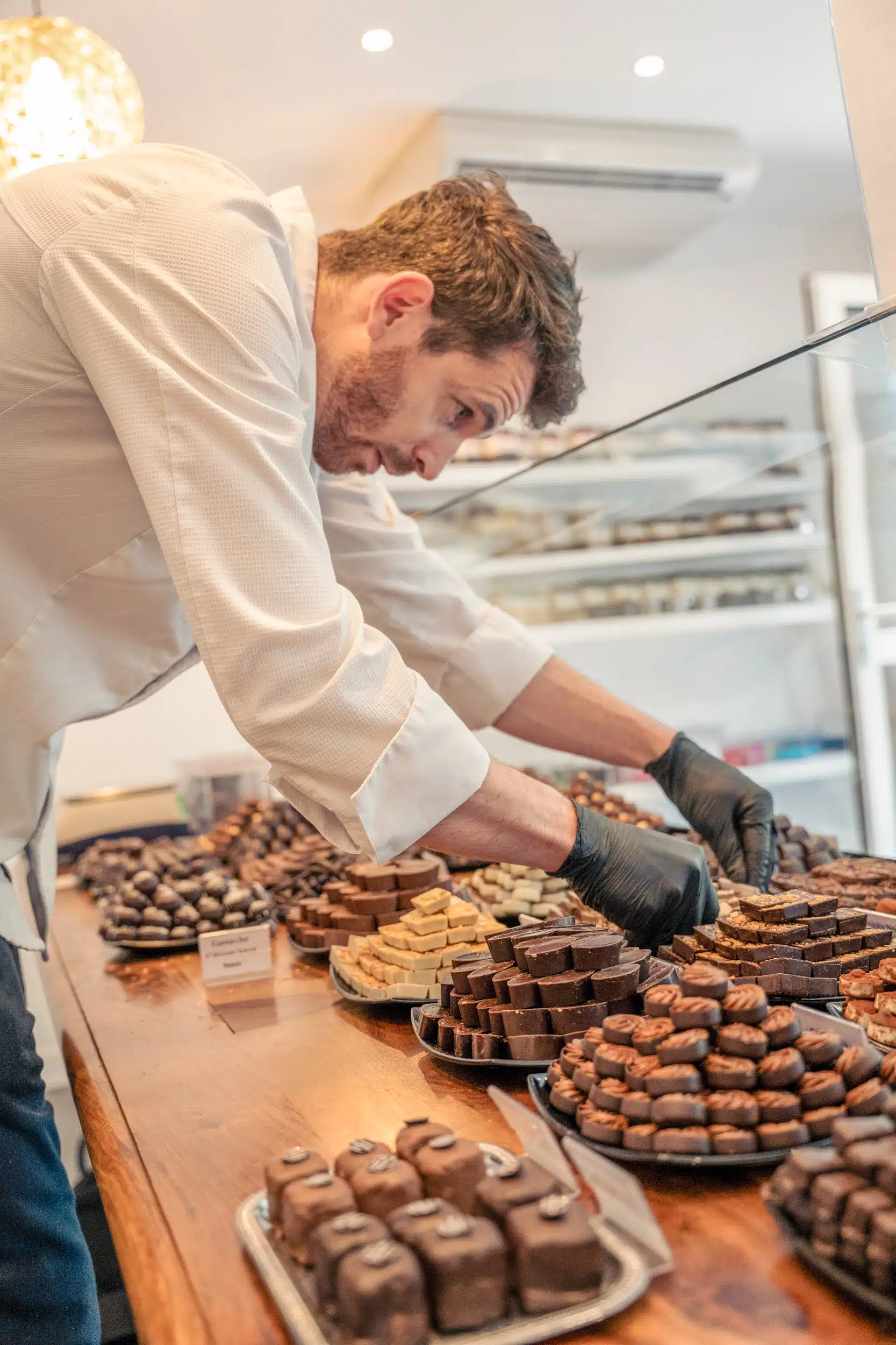 Chocolatiers du Golfe Partager sur Facebook Partager sur Twitter Accueil » Culture » Chocolatiers du Golfe Culture 6 décembre 2023 En tablette ou en bonbons, craquant ou corsé, chaud ou glacé : le chocolat fait fondre la Bretagne ! Les chocolatiers du Golfe du Morbihan vous régalent de leurs délicieuses spécialités inspirées par les saveurs locales. Le mariage de la crêpe et du chocolat est bien consommé… Le chocolat made in Breizh Alors oui, le cacao ne pousse pas en Bretagne, ce n’est pas vraiment une spécialité locale, et pourtant ici, sur Vannes et dans le Golfe du Morbihan, le chocolat est partout grâce au travail d’artisans d’excellence. Les incontournables boîtes gourmandes en fer blanc d’Alain Chartier place des Lices, la chocolaterie girly des Nénettes aux Halles qui exporte ses spécialités jusqu’au Japon, les douceurs chocolatées du jeune pâtissier Pier Marie au centre-ville… La liste des artisans chocolatiers est trop longue pour être exhaustive, mais cette offre pléthorique montre l’appétit des habitants pour le chocolat, et celui de ces orfèvres du goût pour un matériau délicat et séduisant : « c’est une matière à part, agréable à travailler et en même temps très technique »,confirme Gabriel Maingret de la Cabosse créative à Vannes et Grand-Champ. Également pâtissier de formation, le jeune artisan est chocolatier depuis 10 ans et développe une signature qui lui est propre. « Un goût simple et puissant, pas de colorant ni de conservateur, que du naturel : je suis très classique – praliné, caramel au beurre salé – j’aime les goûts francs ». Si le chocolat se déguste à certaines occasions, Pâques, Noël, Saint-Valentin, il sait aussi s’adapter aux saisons pour régaler les gourmands toute l’année. Pour les fêtes, les artisans se mettent sur leur 31 ! Amateurs de chocolat, votre quête de délices ne s’arrête pas là ! Le Golfe du Morbihan regorge de trésors gastronomiques à découvrir. Après avoir savouré les créations de nos talentueux chocolatiers, pourquoi ne pas explorer les autres spécialités qui font la fierté de notre région ? Explorez les spécialités gourmandesdu Golfe du Morbihan Choco Breizh Les artisans chocolatiers puisent dans le riche patrimoine local pour proposer des créations teintées d’un goût de Bretagne. Jean Galloyer a imaginé « Les Brizh », spécialité bretonne inspirée du vent, de la mer et des bateaux à base de nougatine aux amandes enrobée de chocolat. Gabriel Maingret glisse quelques brisures de crêpes dans ses tablettes, Les Nénettes ont imaginé une étonnante tablette fourrée aux crêpes dentelle, praliné maison et confit de framboises. Chez Terre de Fèves, vous trouverez des algues séchées et de la fleur de sel de Saint-Armel dans la tablette Bord de Mer, tandis qu’Alain Chartier propose du chocolat chaud au caramel et des chocolats en forme de marinières, ainsi que de délicieuses créations glacées qui lui ont valu le titre de Meilleur ouvrier de France dans ses 6 boutiques de Vannes, Sarzeau et maintenant Theix-Noyalo… Spiruline, sarrasin, avoine, caramel, noisettes, menthe, cerises sont à découvrir dans les tablettes de Lady Merveilles. Bruno Le Derf, Meilleur ouvrier de France chocolatier, agrémente ses bouchées avec des céréales toastées, de caramel ou de Bourbon. À la Maison Larnicol, on joue sur les noms : galets et rochers des Glénans, Boule à Jojo, grêlons… D’autres travaillent la forme comme Pier Marie Le Moigno avec des palets bretons en chocolat ou des guimauves triskell, les crabes et homards en chocolat de Bruno Le Derf, et les boîtes aux couleurs du Golfe chez Les Nénettes. À Brandivy, la jeune chocolatière Anne-Claire Hérisson crée des bonbons pralinés à l’ancienne, des mendiants, caramels coulants et tablettes au sarrasin torréfié bio de Bretagne. Les Nénètes Gabriel MAINGRET – La Cabosse Créative Alain Chartier Terre de fèves Le « Bean to Bar » Terre de Fèves à Vannes et Lady Merveilles à Saint-Avé pratiquent le Bean to bar, ou « De la fève à la tablette » : « la fabrication du chocolat à partir de la fève crue, explique Marine Schmitt de Lady Merveilles. J’avais vraiment envie de me lancer : torréfier, concasser et broyer moi-même dans mon atelier ». La jeune femme travaille en direct avec des producteurs pour sélectionner les meilleures fèves : « le cacao est une matière vivante, qui exprime des arômes différents selon l’ensoleillement, l’humidité… Un peu comme le vin. Ensuite, on laisse parler sa créativité ! Un degré d’écart dans la torréfaction change les saveurs et le produit fini… Nos chocolats sont uniques ». Marine Schmitt propose même des fèves d’Equateur à croquer, et en poudre pour des infusions originales et glacées pour l’été : « une explosion de saveurs ! ». ATELIERS TOUT CHOCO Découvrez l’art du chocolat avec les ateliers Découverte de Lady Merveilles, ceux avec fabrication d’une tablette chez Terre de Fèves ou encore les cours de l’école des desserts d’Alain Chartier. CONSULTER L’AGENDA LE SALON DU CHOCOLAT DE VANNES Plus de 80 exposants se retrouvent chaque année en novembre pour faire déguster et découvrir le chocolat sous toutes ses formes, avec des concours, des défilés de robes chocolatées, de la magie, des sculptures en chocolat… EN SAVOIR + Croquez aussi ces quelques pages… Producteurs locaux Commerces gourmands de Vannes et du Golfe du Morbihan Food tours dans le Golfe du Morbihan
