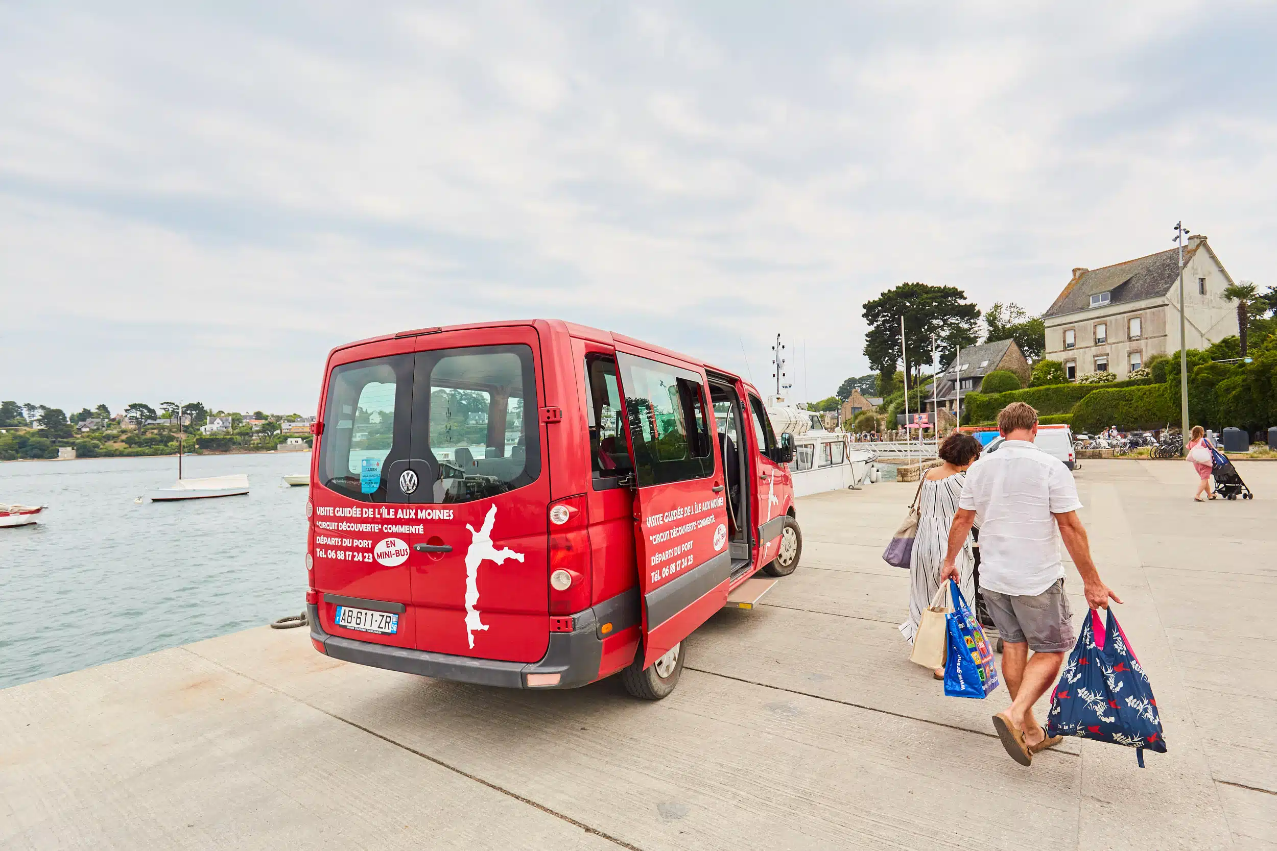 Visiter l’Île aux Moines en minibus Partager sur Facebook Partager sur Twitter Accueil » Culture » Visiter l’Île aux Moines en minibus Culture, Terroir 1 juin 2022 Que diriez-vous de visiter une île du golfe du Morbihan avec un guide local ? Pour tout savoir sur l’île aux Moines, rendez-vous sur le port du Lério où Soazig vous attend avec son minibus rouge. Elle vous embarque pour un circuit commenté d’une heure sur les chemins de la perle du golfe du Morbihan. Se laisser guider par une insulaire passionnée Avec son joli minibus rouge flamboyant, Soazig vous conduit à la découverte de l’île de son enfance. Bien qu’elle ait grandi et habite toujours à Port-Blanc sur le continent, Soazig a passé beaucoup de temps sur l’île aux Moines ! En effet, son grand-père qui était commandant de marine a aussi été maire de l’île pendant 24 ans ! En créant « Lili Voyages », Soazig a souhaité partager avec les visiteurs ses anecdotes sur la vie quotidienne des îlois d’hier et d’aujourd’hui. Toute petite, elle jouait à la marelle dans les ruelles du bourg et partait à la cueillette des mûres sauvages avec ses cousins… Alors forcément les coins et les recoins de l’île, Soazig les connaît par cœur ! Soazig nous raconte la vie quotidienne des îlois d’hier et d’aujourd’hui ! Ici, on vit à l’année sur l’île aux Moines qui compte en hiver 600 habitants pour 3 km2. Une école, une pharmacie, une boulangerie, une épicerie, un médecin, un infirmier et un kiné suffisent aux îlois pour assurer leurs besoins quotidiens. En été, les nombreux cafés et restaurants de l’île ne désemplissent pas ! Il faut dire que l’île aux Moines est loin d’être isolée puisque 5 minutes suffisent pour rejoindre Port-Blanc à Baden sur le continent avec des traversées maritimes toutes les 30 minutes, chaque jour de l’année. Découvrir l’île aux Moines en minibus Depuis maintenant plus de 10 ans, Soazig assure d’avril à octobre 4 départs journaliers pour la visite guidée de l’île aux Moines dans un confortable minibus de 9 places. Le circuit débute sur le port puis traverse le bourg avec ses maisons de capitaines et petites bicoques de pêcheurs. Puits, fontaines et roses trémières soulignent avec élégance l’architecture traditionnelle de l’île bretonne. L’itinéraire se poursuit vers le sud jusqu’à la pointe de Pen Hap qui abrite le célèbre chantier naval du Guip, spécialisé dans la construction et la restauration de bateaux traditionnels. À bord du minibus, on profite de la hauteur du véhicule pour contempler la vue sur la mer et la richesse floristique de cet espace naturel préservé où s’épanouissent la lande, la bruyère et le genêt. Tout au long du parcours, Soazig vous raconte les dessous de l’île aux Moines : un commentaire hors du commun ponctué de nombreuses anecdotes dont certaines franchement croustillantes ! En remontant par la pointe de Brouël à l’est, on peut facilement saluer l’île voisine. Arz se trouve juste en face, à seulement 600 mètres. Les deux îles étaient autrefois reliées par un isthme dont il ne reste aujourd’hui que deux pointes aux noms identiques. Sur la route du bourg, dans une enceinte privée, on aperçoit le manoir Sainte-Anne, dit château du Guerric. Seuls le parc, planté d’essences multiples, et sa chapelle sont accessibles au public. De retour au port après 1 heure de balade à bord du minibus de Lili Voyages, vous aurez le sentiment d’avoir eu la chance de partager un morceau de vie de cette île attachante grâce au récit si vivant de Soazig. Infos pratiques Pour visiter l’île aux Moines en minibus, pensez à réserver ! JE CONSULTE LA FICHE